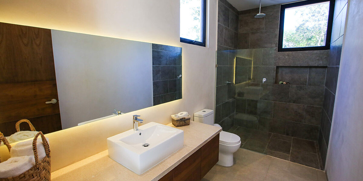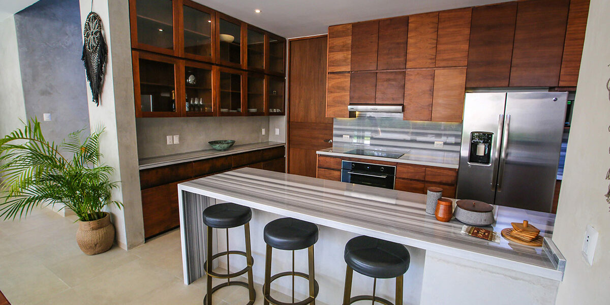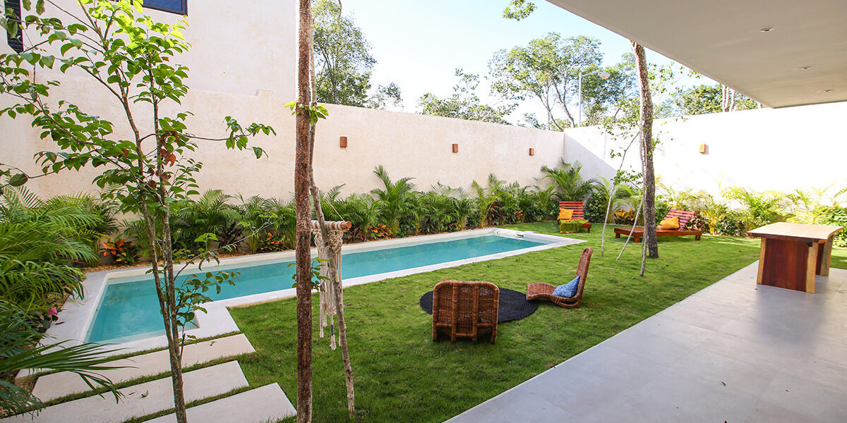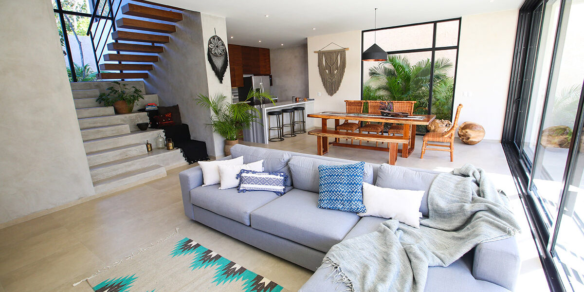 Ubicada en un vecindario tranquilo cerca del centro de Tulum, la propiedad te ofrece habitaciones amplias y ventiladas con ventanas de piso a techo que llenan el espacio con luz natural. Asimismo, cuenta con un amplio lavadero, espacio de almacenamiento y unidades de aire acondicionado en toda la casa. De hecho, la arquitectura contemporánea se combina a la perfección con los materiales locales, creando una Casa de lujo en Tulum única y acogedora.