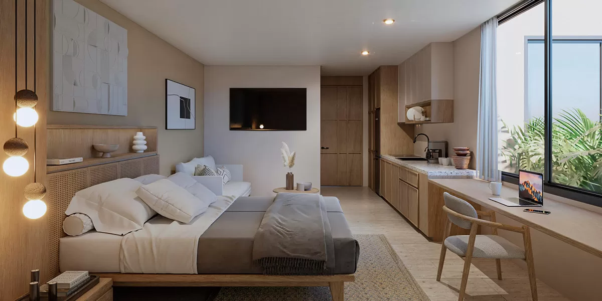 En Pre-venta departamento de 2 recámaras diseñado con la más exquisita elegancia y confort. Cada rincón de este exclusivo desarrollo irradia lujo y sofisticación, ofreciéndote una experiencia de vida incomparable.
